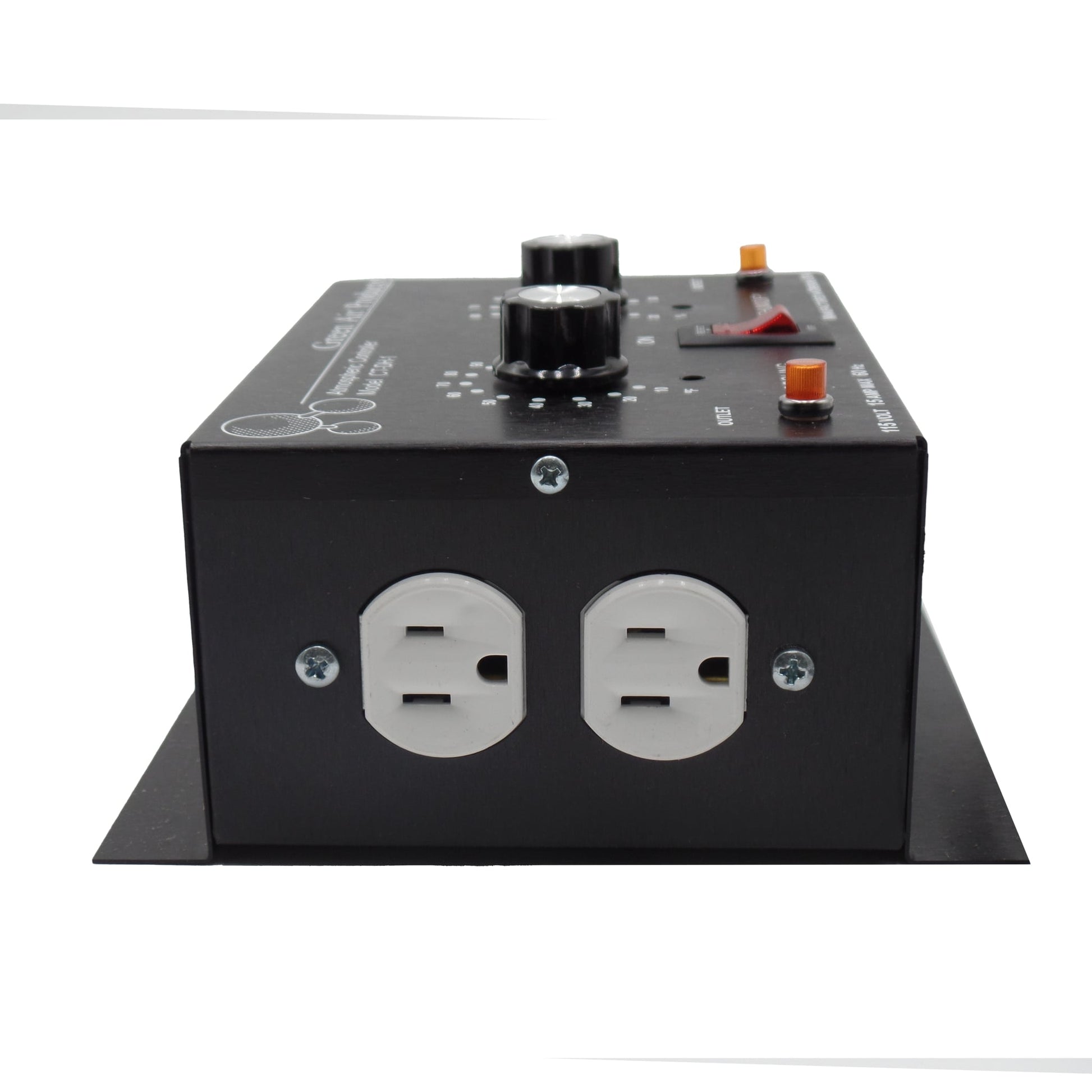 The CT-DH-1 is designed to turn "On" exhaust and/or intake fans to remove excess or unwanted heat and humidity. Set your desired temperature and humidity using the dials. Internal sensors will allow a 7ºF temperature comfort zone and a 5% humidity span, (differential) between the time the fans activate for cooling or dehumidifying and then turn "Off" again. Plug-in and control circulation fans, exhaust fans, cooling systems, or dehumidifiers. The outlets on the CT-DH-1 are integrated, so that when either the temperature or humidity settings are exceeded, all four will activate, turning "On" equipment plugged into any of the four outlets.